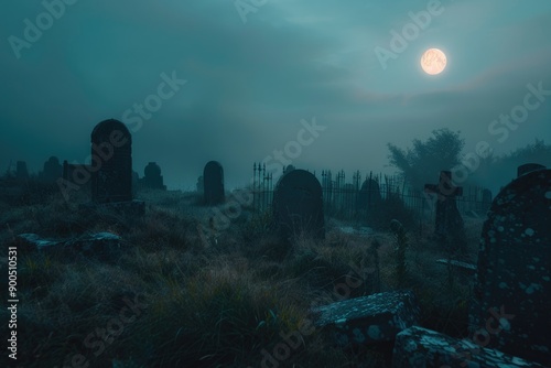 A peaceful cemetery scene under a full moon