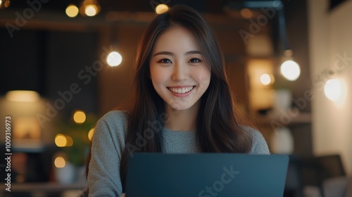 woman, laptop, computer, smile, happy, technology, office, workplace, digital, screen, cyberspace, online, communication, social, media, work, home, remote, freelancer, entrepreneur