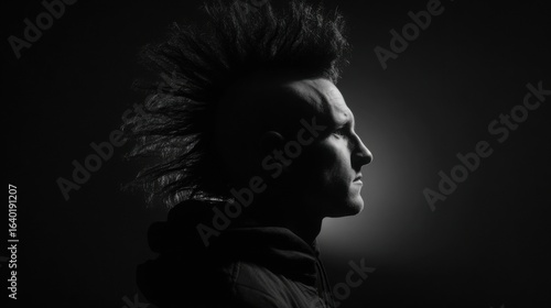 mohawk, coiffure, profile, studio, lighting, individual, punk, fashion, art, portrait, creativity, expression, edgy, design, minimalist, personality, uniqueness, attitude, hair, model, side, view, dramatic, masculine, urban, alternative, portraiture, cool, contemporary, rebellion, bold, striking, character, youth, statement, style, inspiration, creative, look, modern, noosphere, cultural, identity, aesthetic, hip, stylish, rebellious, iconic, confidence