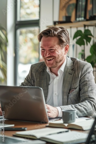 A person sitting at a desk with a laptop and possibly working or browsing online