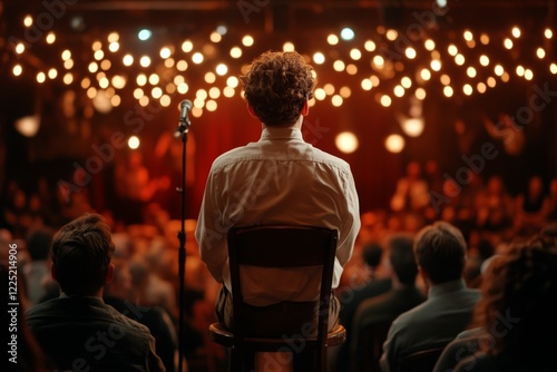 person, standing, confidently, stage, receiving, ovation, audience, filled, admiration, their, expression, humble, proud