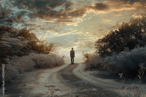 person, standing, dirt, road, middle, field, farmer, agriculture, landscape, rural, countryside, nature, outdoors, scenic, scenery
