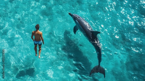 ocean, dolphin, water, swimming, nature, interaction, marin, adventure, leisure, summer, wildlife, blue, travel, fun, life events, animal, sea, environment, freedom, beauty, sport, friendship, joy, exploration, calmness, aquatic, wave, sun, play, moment, serenity, splash, horizon, landscape, tropical, beach, healthy, connection, movement, depth, clarity, joyfulness, companionship, discovery, activity, engagement, peace, immersion