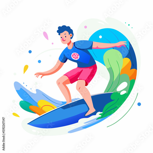 A person surfing on a wave. Cartoon vector illustration on white background.