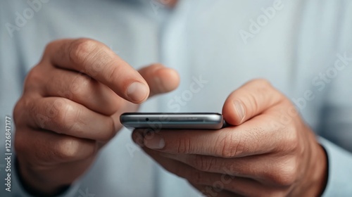 A person using a smartphone, focusing on their hands as they interact with the device.