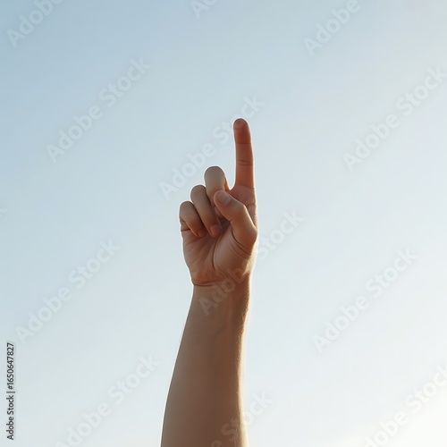 hand, finger, pointing, index, up, sky, blue, clear, day, sun, light, bright, outdoors, weather, human, person, arm, skin, gesture, signs, communication, direction, number, 1, first, leader, guidance, success, victory, goal, achievement, motivation, inspiration, hope, future, dream, aspiration, ambition, sharpened, attention, awareness, consciousness, mind