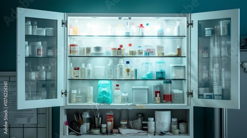 A photo of a medicine cabinet in hospital