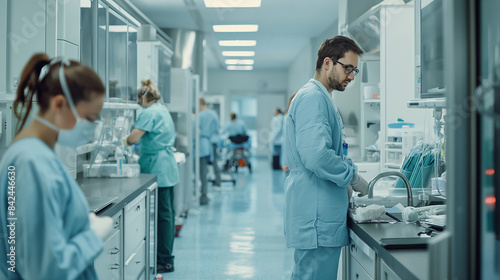 A Photo of people working in medical facilities, using natural light.