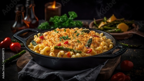 A photograph of food in front of dark background