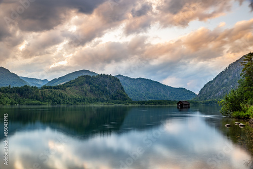 morning, sunrise, sunset, stone, tree, wood, forest, holiday maker, lake, copy space, no people, austria, europa, cabin, water, mountain, sky, cloud, gold, calm, peaceful, nature, landscape, scenic, travel, photo, outdoors, picturesque, tranquil, serene, beautiful, vacation, relaxation, evening, horizon, tree, green, blue, orange, yellow, waterfront, dusk, light, soft, alpine