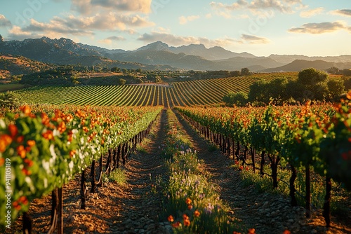 vinery, summer, harvest, bloom, picturesque, grape, agriculture, winery, countryside, lush, greenery, scenic, landscape, rural, nature, growth, farming, seasonal, ripe, wine, fertile, outdoors, vibrant, grapevine, natural beauty, organic, field, sunlit