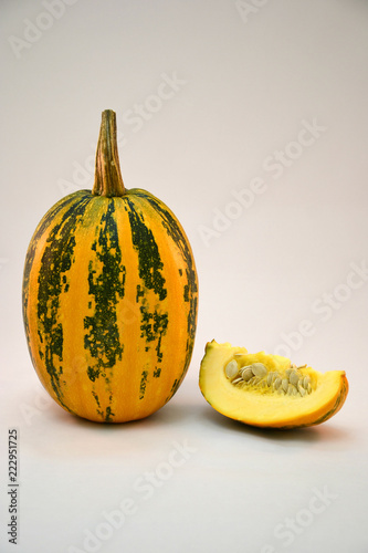 pumpkin, vegetable, plant, food, yellow, ripe, on white, appetising, vitamin, useful, dietary, elongated
