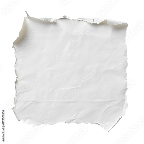 A piece of white paper with torn edges, isolated on a transparent background,