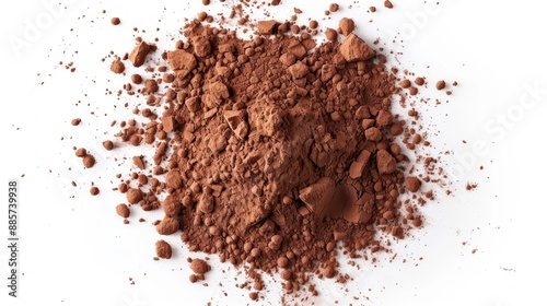 A pile of chocolate powder on a clean white surface, perfect for food photography or recipe illustrations