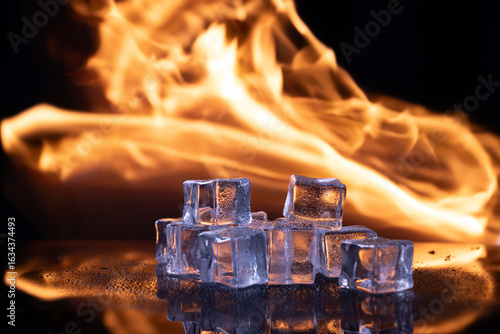fire, ice, contrast, melting, hot, cold, flames, combustion, spark, glacé, water, heat, temperature, opposite, phenomena, extreme, transformed, dynamic, energy, agitation, display, chemistry, reaction, intense, stunning, abstract, science, transformation, elemental, dramatic, burning, unique, mix, novelty, concept, creative, exotic, exciting