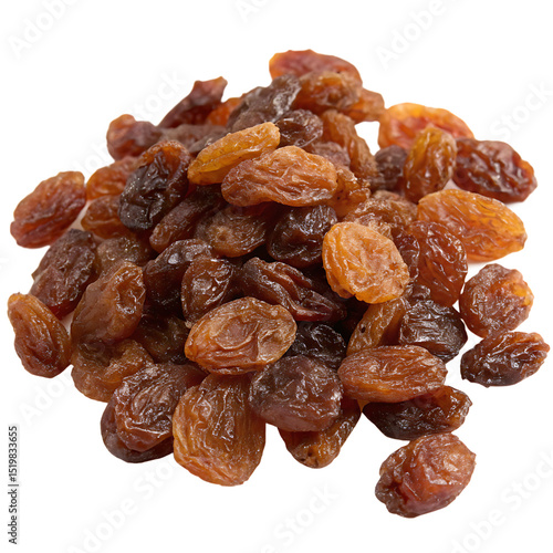 A pile of dried raisins isolated on a transparent background