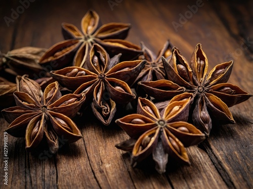 star anise, spice, aromatic, favor, cooking, herbal, fragrant, seasoning, star-shaped, warm, sweet, antioxidant, digestion, weight loss, metabolism, vitamin c, antibacterial, detox, herbal tea, chinese cuisine, calming, soothing, natural, seasonal, culinary, organic, cooking ingredient