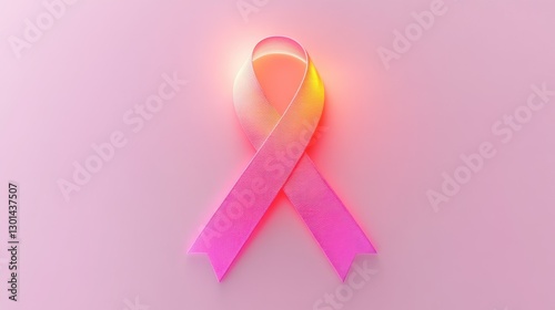 A pink awareness ribbon displayed with a gradient on a pink background