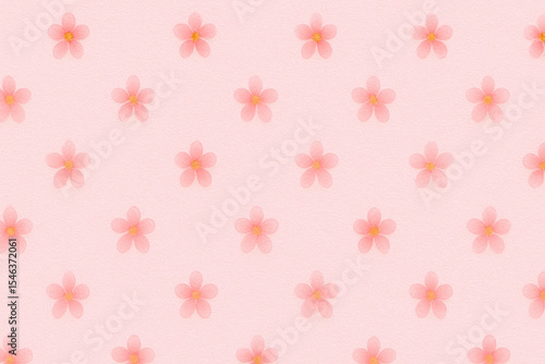 A pink background with many small pink flowers. The flowers are arranged in a pattern and are scattered throughout the background. Scene is soft and delicate