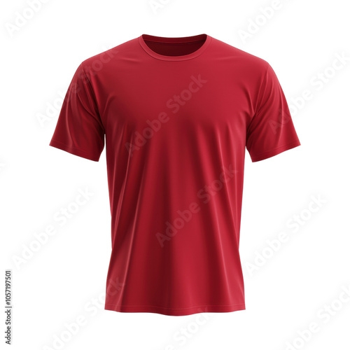 A plain red t-shirt displayed isolated on a white background, showcasing its simple design and vibrant color, ideal for casual wear or promotional use.