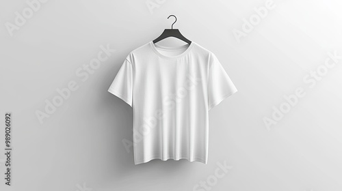 A plain white t-shirt draped on a hanger, centered on a clean background, showcasing the perfect canvas for logos or custom prints.