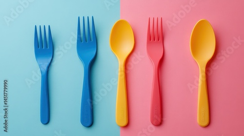 A plastic cutlery set, including a fork, knife, and spoon