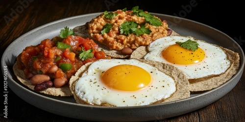 bean, attractively, classic, egg, food, epicure, plate, serving, tomatoes, traditional