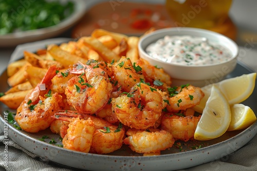 scampi, food, meal, meat, dinner, plate, dish, vegetable, rice, chicken, cookery, fish, salad, seafood, delicious, fried, pork meat, epicure, healthy, tomatoes, white, fresh, lunch, green, red, sauce
