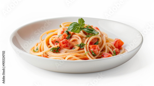 spaghetti, carbonara, italian, food, cookery, plate, basil, tomatoes, pasta, dish, fresh, serving, delicious, meal, dinner, lunch, cooked, epicure, savoury, traditional, eat, eating, white, background, fat, health, care, culture, isolated, presentation, herb, white plate, creamy, protein, homemade, ethnic, culinary, classic, appetising, mediterranean, noodle, vibrant, italy
