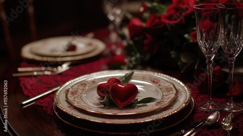 A plate with a red heart on it