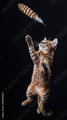 bengal cat, playful, jumping, agility, playtime, cat, pet, black background, leaping, fun, felino, wild, domestic, cute, vibrant, nature, energy, activity, adorable, motion, whisker, joyful, focused, dynamic, paw, tiger pattern, curiosity, exploration, furry, eye, athletic, hunting, instinct, captivating, charismatic, interaction, colourful, bouncing, spontaneous, entertaining