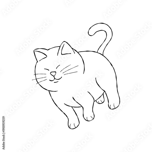 cat, jump, jumping, walking, cute, smiling, animal, black, vignetting, hand-drawn, outline, fun, vector, illustration, cartoon, clip art, clip art, line, line art, doodle, isolated, element, pet, friends, happy, day, friendly, drawing, stroke, fat, minimal, white cat, graphic