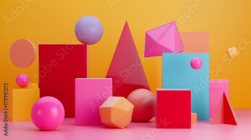 A Playful Composition of Matte Plastic Objects Floats in a Sea of Color, Capturing the Essence of Anime Aesthetics in a 3D Render