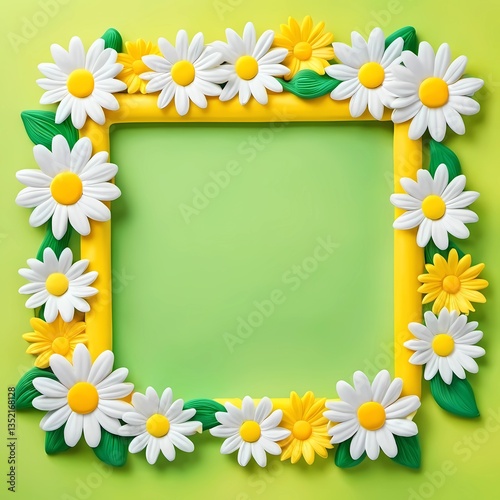 daisy, frame, yellow, green, flower, empty, space, creativity, playful, nature, fresh, bright, cheerful, decoration, summer, botanical, design, invitation, warmth, joy, unique, showcase, display, beautiful, floral, art, hand-made, inspiration, colours, greenery, background, flower, arrangement, aesthetic, colourful, whimsical, environment, seasonal, holiday, celebration, fun, charming, freshness, delicate, ornamental, visual, element, generative, ai