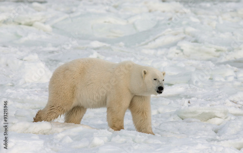 A polar bear on the tundra. Snow. Canada. An excellent illustration.
