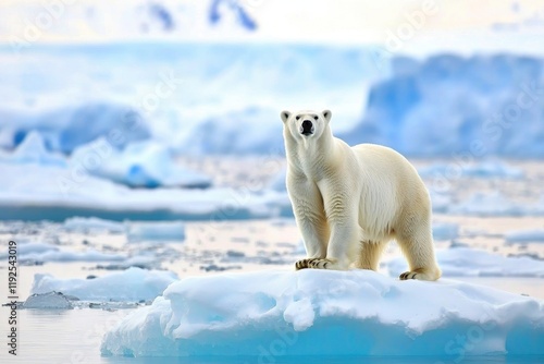 A polar bear standing proudly on an ice floe, overlooking a vast expanse of Arctic waters.