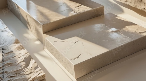 A polished ceramic stone with a glossy finish, smooth surface, and intricate texture, designed for modern architecture or interior design, soft neutral tones, generative ai