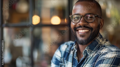 ..A portrait of a beaming African American entrepreneur embracing the small business dream