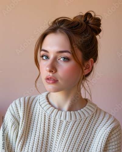 beauty, portrait, fashion, coiffure, sweater, femininity, warmth, innocence, graceful, expressive, simplicity, serene, radiant, relaxed, skincare, chic, aesthetic, youthful, youth, pastel, glamour, make-up, peaceful, trendy, vibrant, stunning, soft, photo, joy, model, elegance, expression, artistic, comfort, cosy, alluring, charme, ambience, enchanting, delightful, captivating, closeup, hair, young, modern, lifestyle, style, casual attire, natural