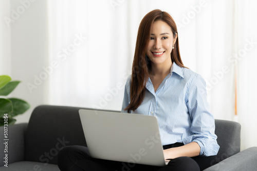 A portrait of Asian happy Businesswoman smiling and working at office.