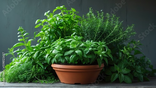 herb, garden, potted, greenery, terracotta, pot, herb, plant, foliage, organic, fresh, natural, kitchen, culinary, growing, gardening, indoor, wooden, surface, rustic, healthy, vibrant, aromatic, herbal, greener, planting, cultivation, environmentally friendly, decorative, botanical, health, wellness, traditional, timeless, seasonal, versatile, functional, homegrown, no people