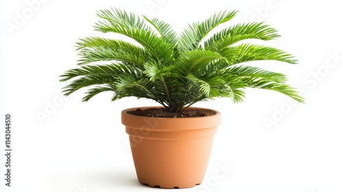A potted plant with green leaves on a white background