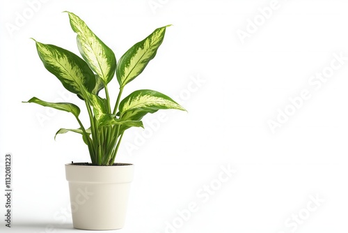 A potted plant with large, green, variegated leaves.