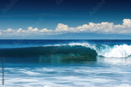 ocean, wave, sea, beach, water, sky, cloud, blue, nature, landscape, horizon, summer, sun, sunlight, coastal, scenery, calmness, peaceful, beautiful, scenic, background, travel, vacation, photo, outdoors, vibrant, energy, power, mighty, majestic, tropical, paradise, serenity, calm, foam, crest, turquoise, deep blue
