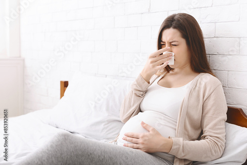 young, woman, lady, pregnant, expecting, pregnancy, motherhood, bedchamber, pregnant woman, sneezing, tissue, bed, cold, health, maternity, indoor, bright light, discomfort, disease, resting, morning, casual clothes, health care, relaxation, soft light, peaceful, hygiene, gestation, antenatal, cosy, domestic life, sneeze, wellness, home, female, allergy, daylight