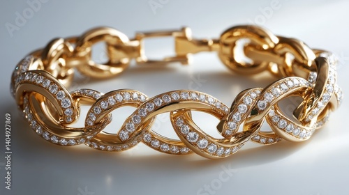 A premium gold bracelet with brilliant diamonds embedded in a clean design, isolated on a white backdrop