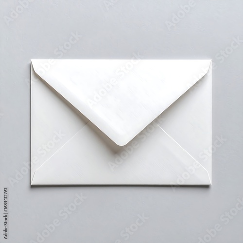 A pristine white envelope rests on a neutral background, showcasing its smooth surface and sharp folds.