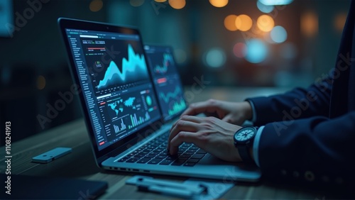 business, technology, finance, investment, computer, graph, statistic, entrepreneur, laptop, corporate, workspace, digital, trading, stock exchange, professional, innovation, performance, strategy, productivity, trend, multitask, report, businessman, hand, closeup, desktop, nocturnal, bokeh, analysis, success, career, planning, efficiency, teamwork, management, organisation
