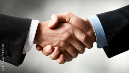 A professional handshake between two individuals, symbolizing agreement and partnership in a business environment.
