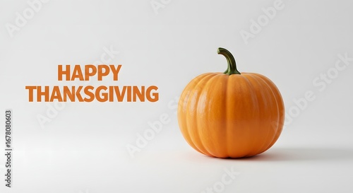 pumpkin, thanksgiving, happy, fall, autumn, harvest, orange, seasonal, holiday, celebration, greeting, message, text, white, background, still, life, simple, minimalist, season, october, november, decorative, decoration, food, produce, vegetable, gourd, cucurbit, ripe, healthy, fresh, plant, stem, agriculture, crop, farm, festive, tradition, traditional, symbol, symbolic, nature, natural, organic, ingredient, cooking, baking